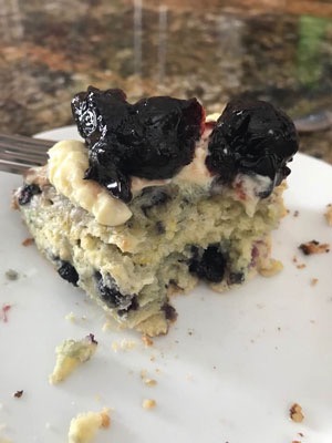 · Sift flour, sugar, baking powder, and salt into a large bowl. Using 2 knives, or blender on low, cut the butter into the flour mixture until it resembles small peas. Stir in the blueberries and lemon zest.